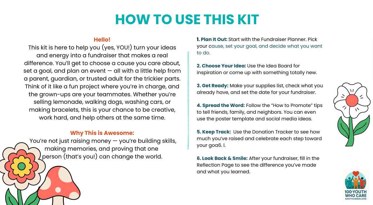 - Download our free Activity Kit with ready-to-go ideas like birthday giving, neighbourhood kindness challenges, or “give what you can” pop-up donation tables.