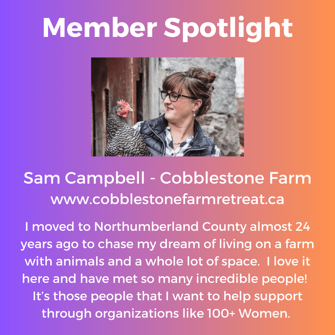 Would you like to be featured in an upcoming member spotlight? If so, please email a picture and short blurb to Sam at 100womennorthumberland@gmail.com.