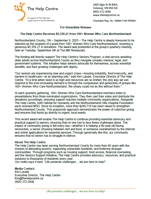 Email: info@100womennorthumberland.ca